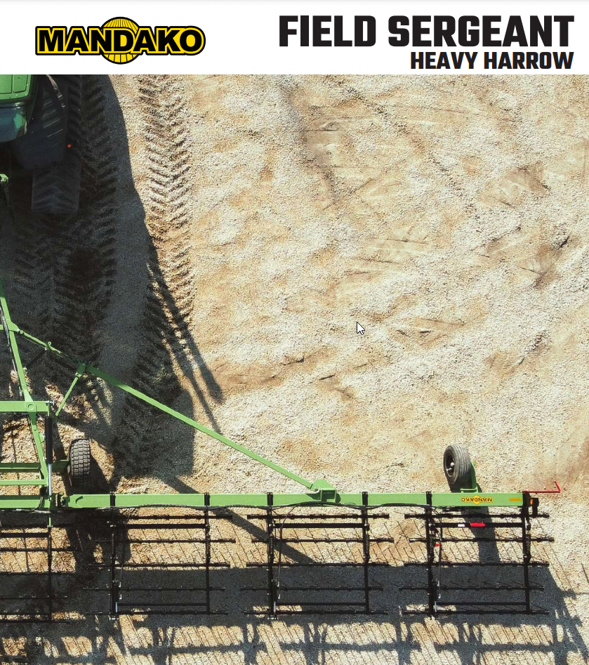 Wählen Sie den Mandako Field Sergeant für eine schwere Egge, die Sicherheit, Vielseitigkeit und Haltbarkeit in einem leistungsstarken Paket vereint. Erleben Sie die Ruhe, die mit dem Betrieb eines Werkzeugs verbunden ist, das für die Herausforderungen der modernen Landwirtschaft entwickelt wurde, und schließen Sie sich den Reihen der Landwirte an, die ihre Felder nicht nur bearbeiten, sondern sie beherrschen. Mit dem Mandako Field Sergeant beginnt Ihre Suche nach landwirtschaftlicher Exzellenz gerade erst.